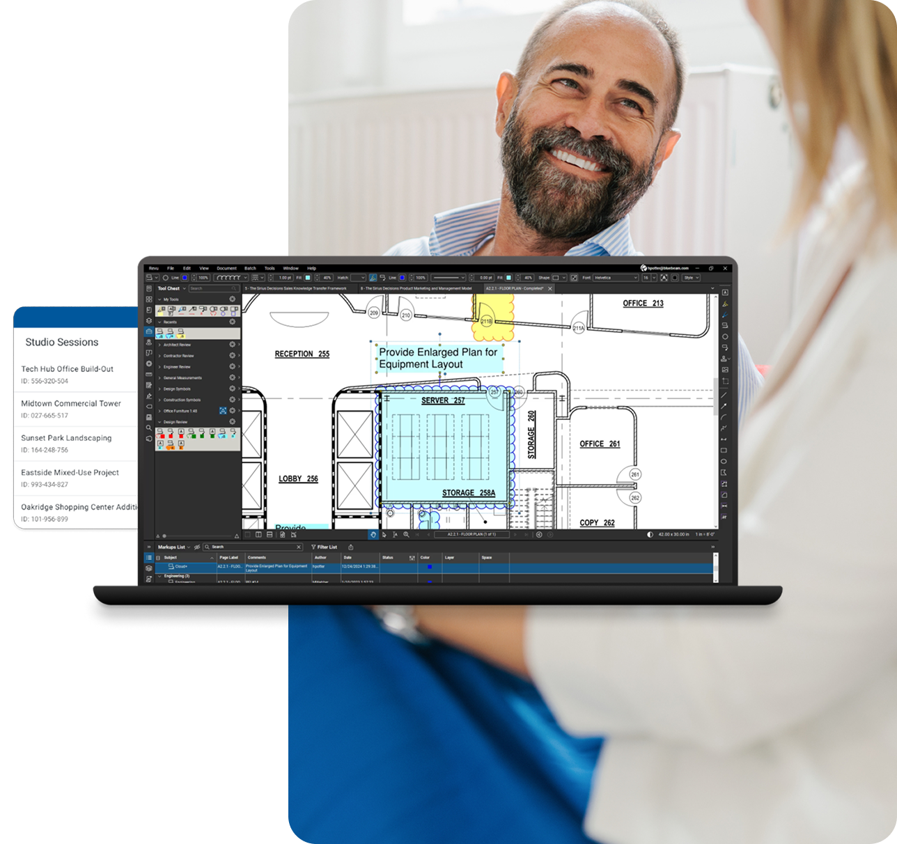 - Invite anyone collaborate on drawings in real time, even if they don’t have Bluebeam