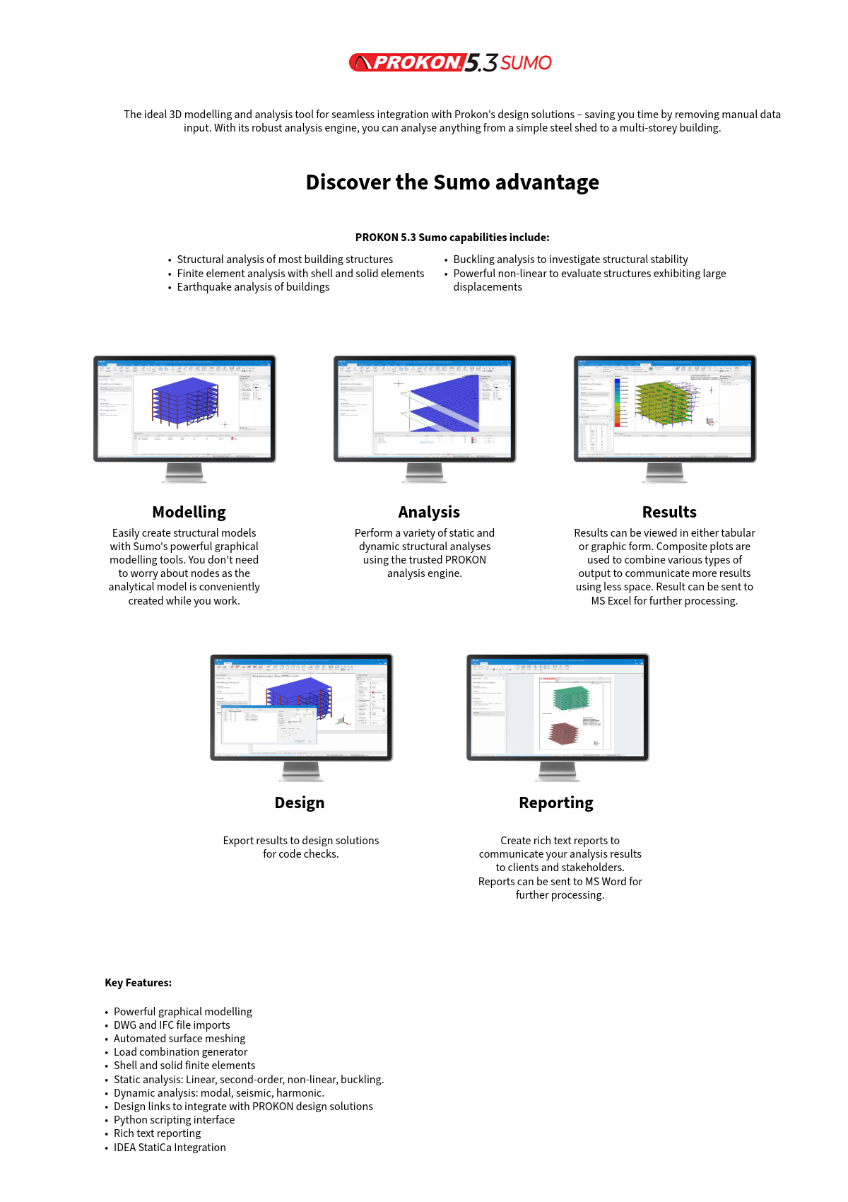 Integrated bi-directional data transfer solution, allowing Structural Engineers, BIM Coordinators, and Architects to transfer 3D models between Prokon Sumo and Autodesk® Revit® seamlessly.